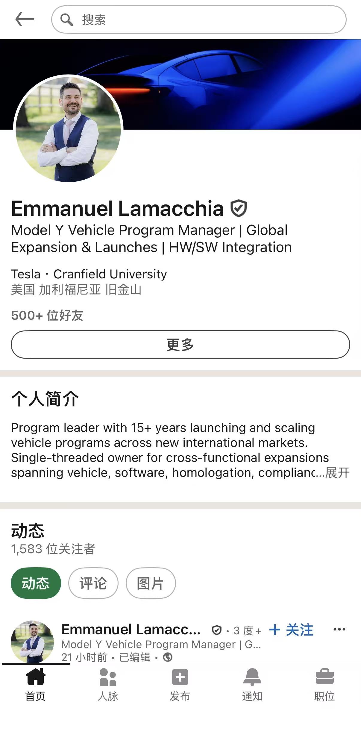 就在特斯拉Cybertruck项目负责人宣布离职的当天晚些时候,特斯拉Model Y SUV的项目经理Emmanuel Lamacchia也在领英上宣布在公司工作八年后离职。